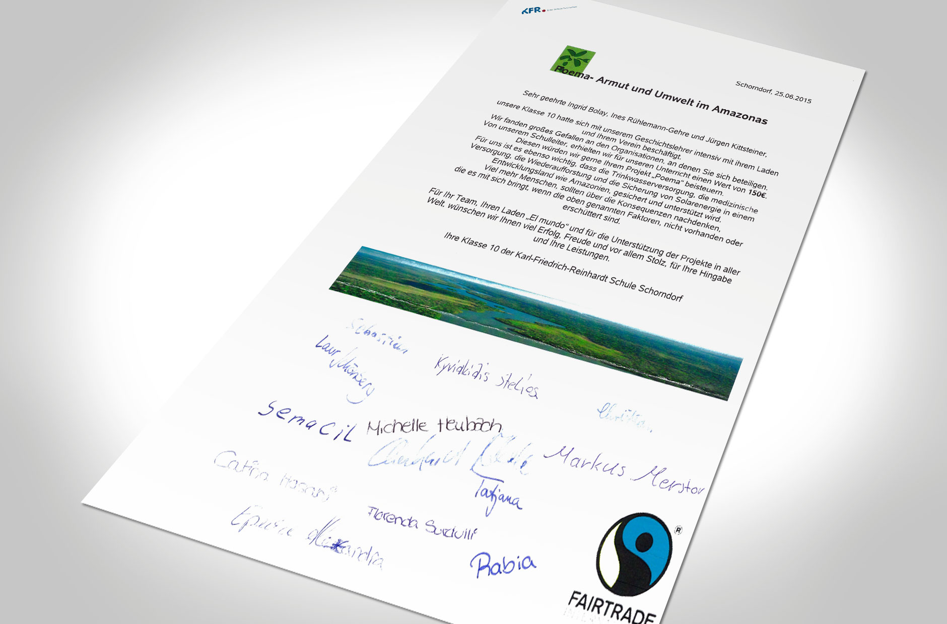 Gemeinsam entwickeln wir unterschiedliche Projekte. Zuletzt wurde mit Unterstützung der SEZ durch Mittel der Landesstiftung Baden-Württemberg eine Frauenkooperative in der Professionalisierung ihrer Herstellung von Regenwaldschmuck unterstützt. Kurse wurden finanziert und ein rotierender Fond für Messeauftritte angelegt.